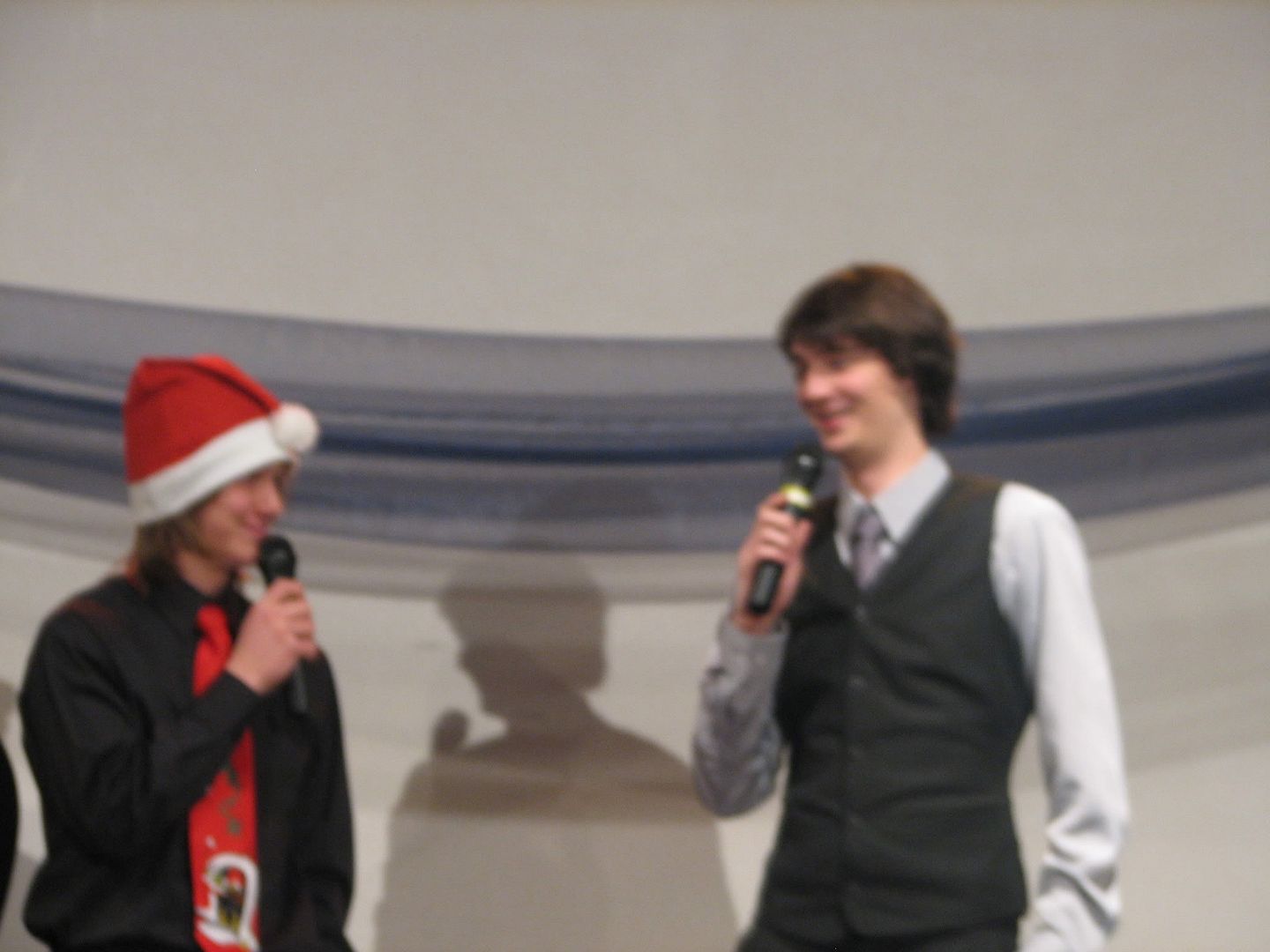 A fuzzy pic of Morgan and Robert doing their thing on stage
